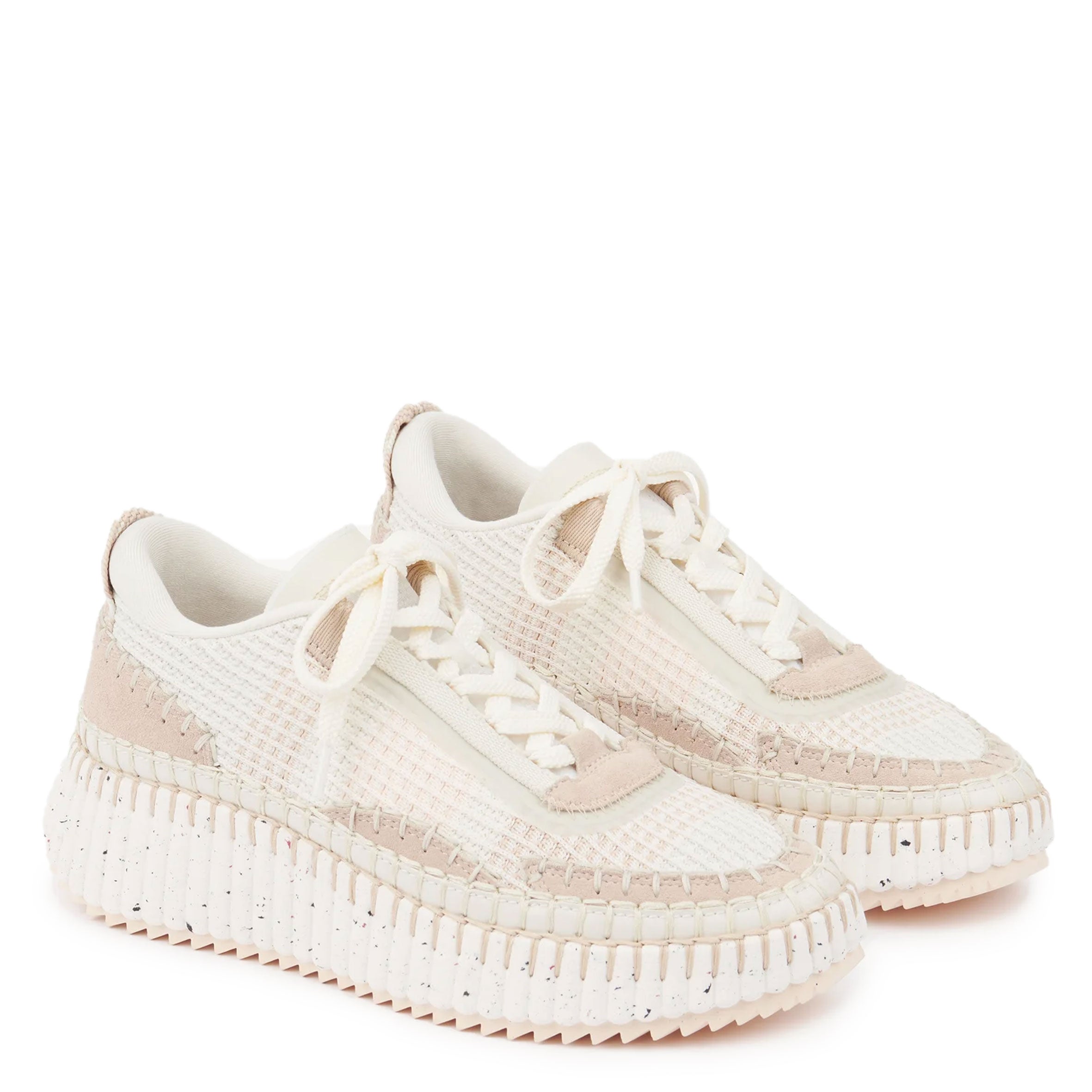 The bold, lightweight structure features a hand-stitched mesh upper, showcasing authentic Chloé craftsmanship. Set on a contrasting, ridged sole, this women's sneaker is ultra-comfortable with a cool, sporty aesthetic. The Chloé logo at the back adds a signature touch.