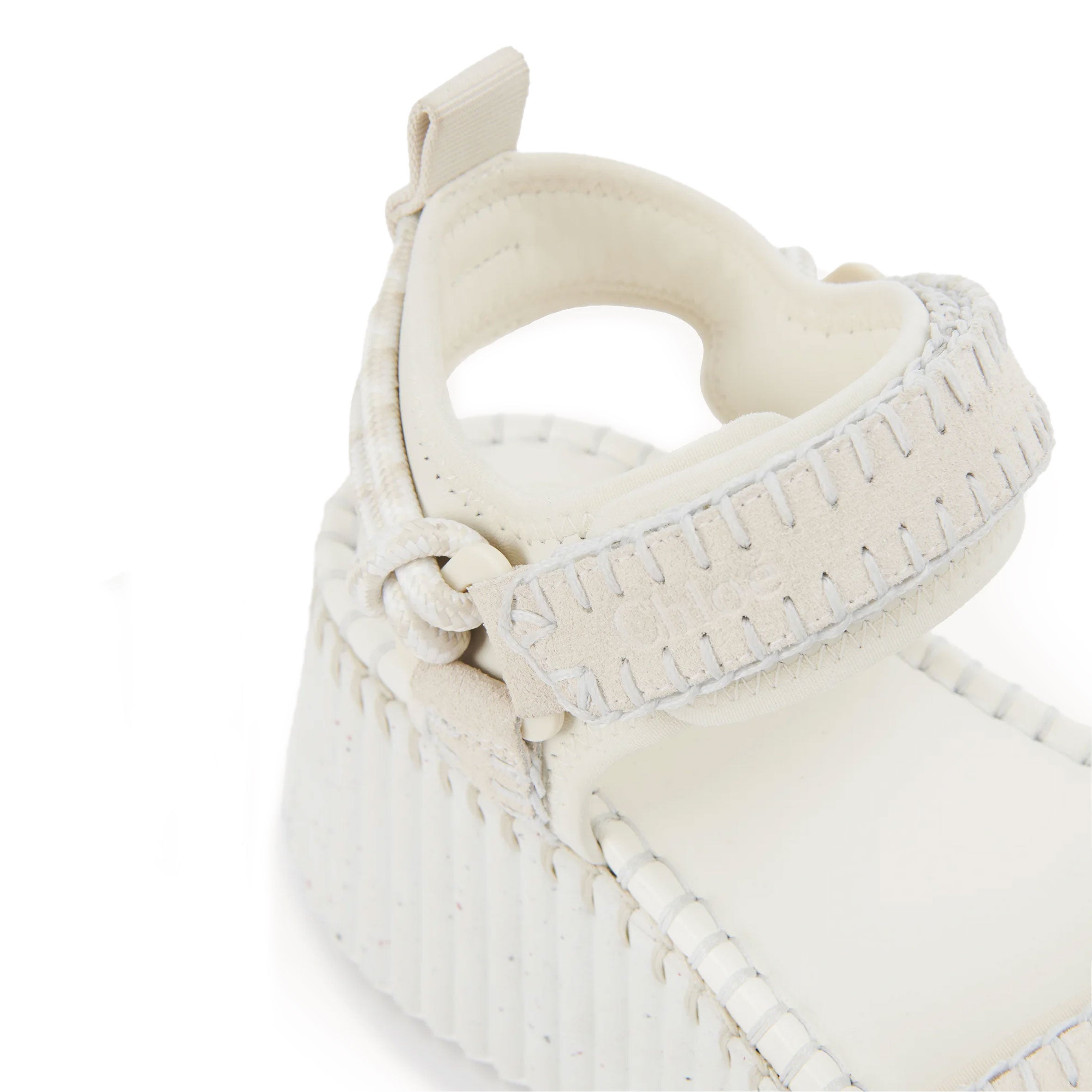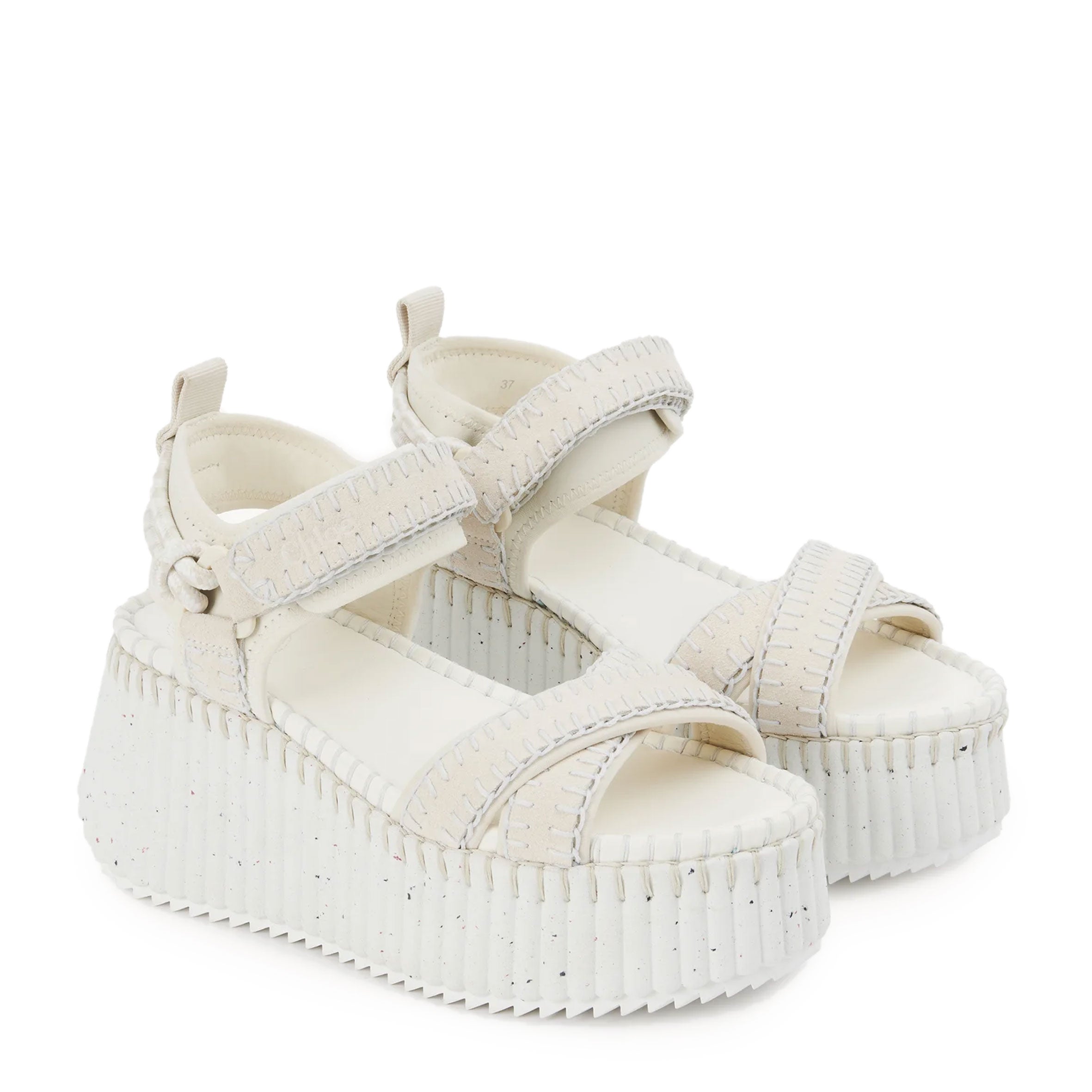 Bold and lightweight, the ultra-comfortable recycled platform sole has a ridged texture that is complemented by the line's distinctive hand-stitching. The suede calfskin upper matches criss-cross front straps with an adjustable ankle strap and a sporty back loop, along with tonal laces tied in nautical knots.