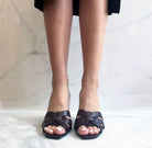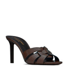 Tribute heeled mules in smooth leather. Open toe with intertwining straps, a squared toe and stiletto heel. Comfortable 85mm heel height.