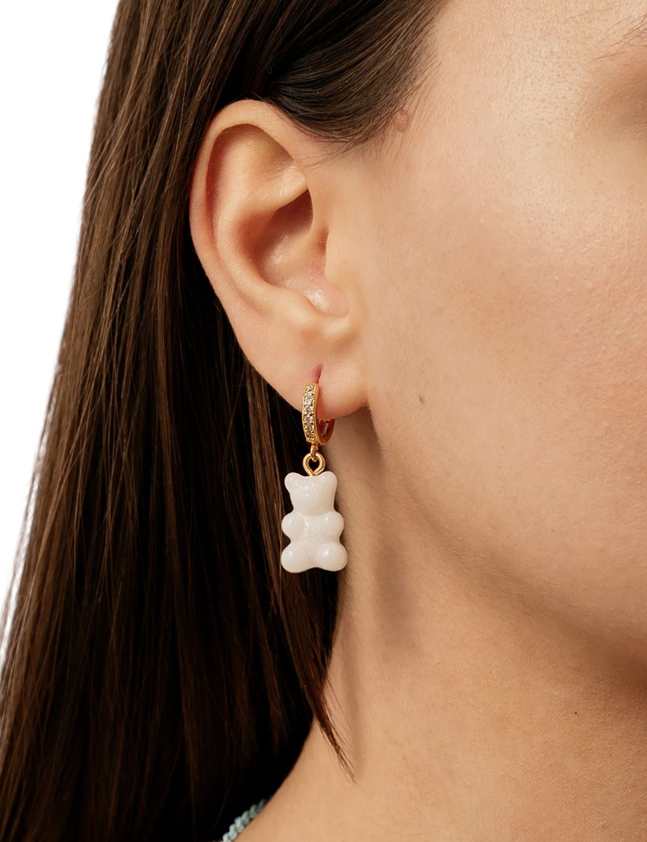 Signature Nostalgia bear hoop with pave detail and resin bear.
