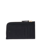 A zipped compartment with a flat pocket on the front and four card slots on the back.