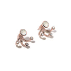 Pamela Love's gravitation earrings create a modern, feminine look. A moonstone cabochon set in rose gold features three curved white topaz-accented arms that extend from behind the ear, giving the illusion of the earring hugging the lobe. Adorn you ears with charm and wear in the earlobe or the cartilage.