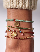 Bold green and natural jasper beads that don’t play it safe. Peyote is your wildcard — the piece that wakes up your whole wrist stack.