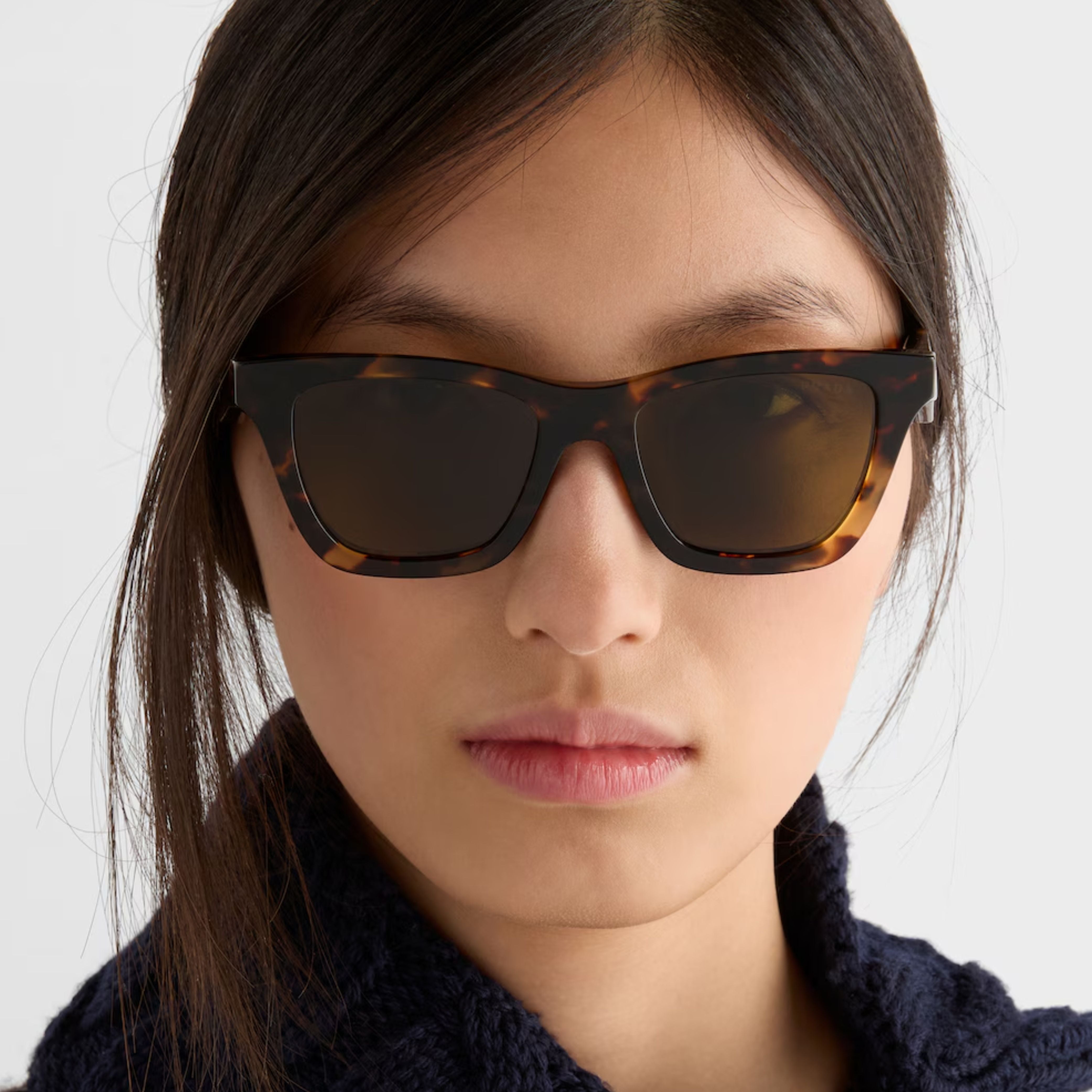 A synthesis of refinement and minimalism, these acetate sunglasses have a square silhouette with strong lines. The bold design of the temples is highlighted by the Prada logo.