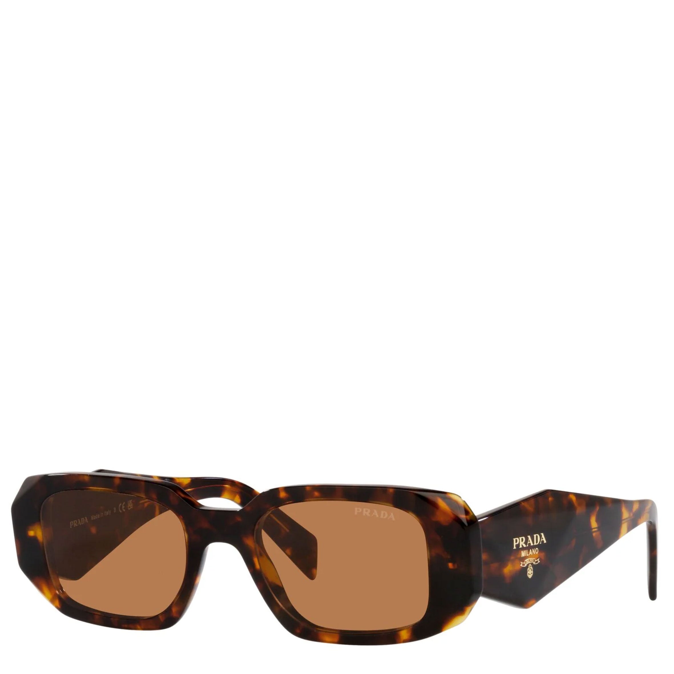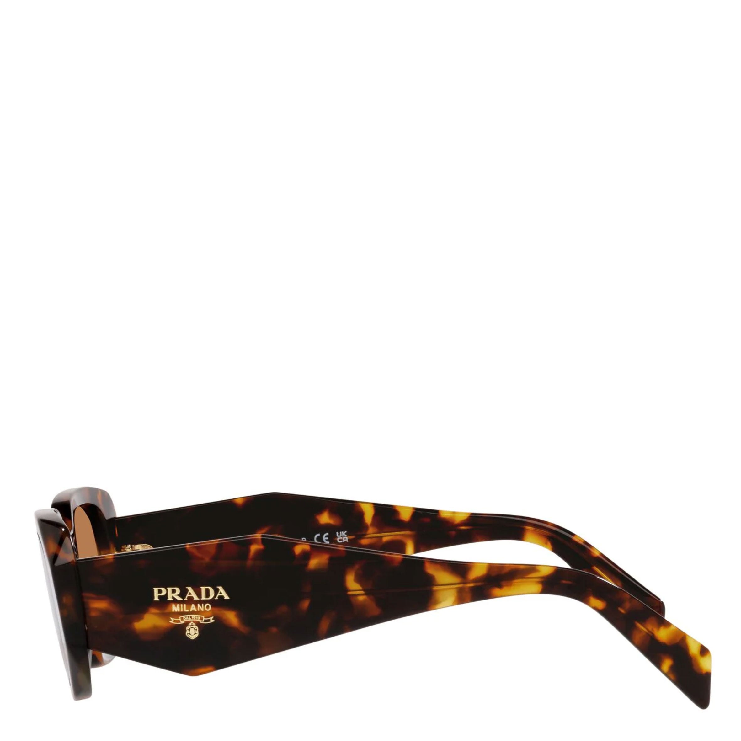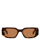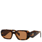 Prada sunglasses with distinctive narrow shape and triangular facets highlight the brand identity of this disinctive Prada catwalk look. These glasses feature a polished tortoise acetate frame in a rectangle shape, offering a modern and sophisticated look. The solid brown lenses add a touch of elegance to the design, making these shades an ideal choice for everyday wear.