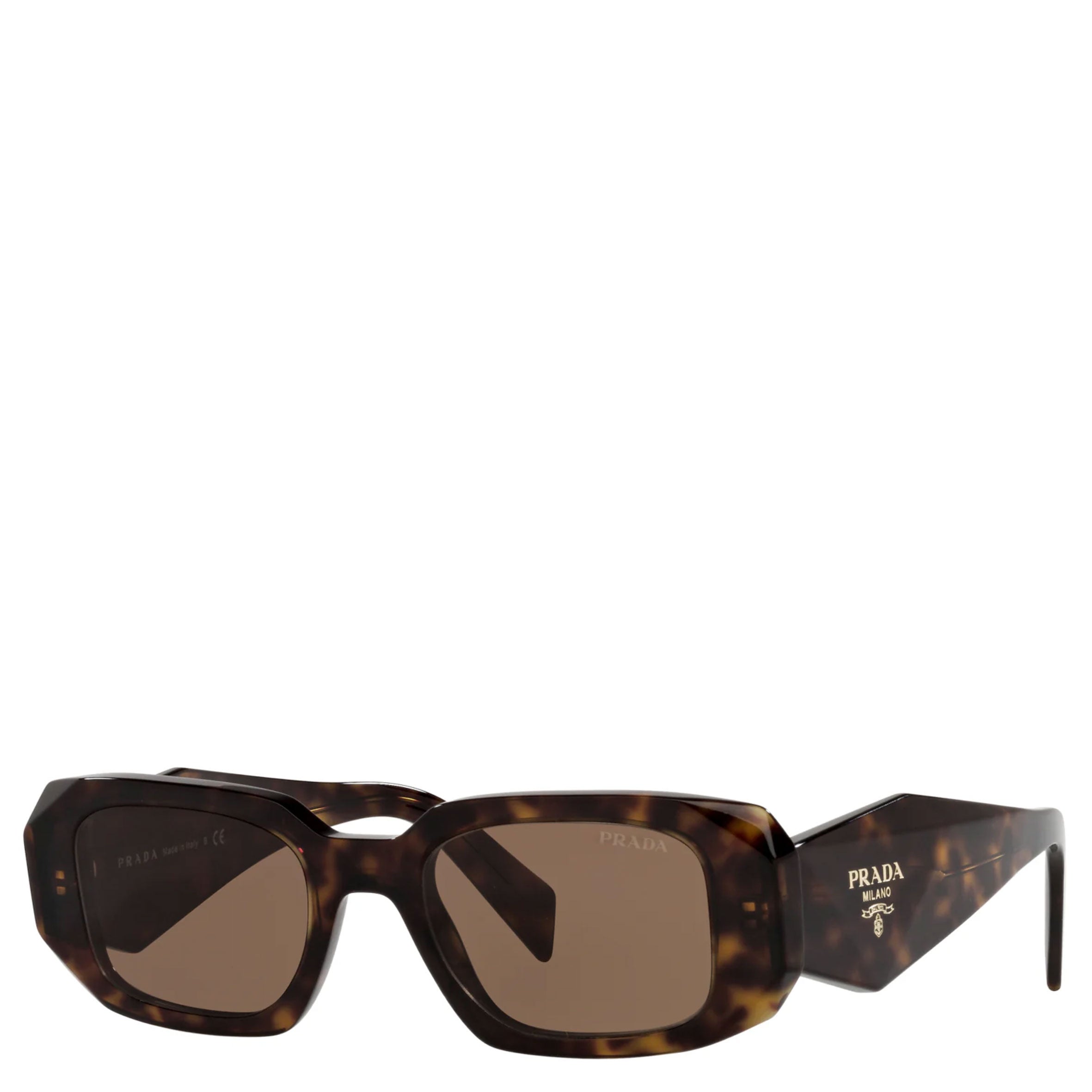 Prada sunglasses with distinctive narrow shape and triangular facets highlight the brand identity of this disinctive Prada catwalk look. These glasses feature a polished tortoise acetate frame in a rectangle shape, offering a modern and sophisticated look. The solid brown lenses add a touch of elegance to the design, making these shades an ideal choice for everyday wear.
