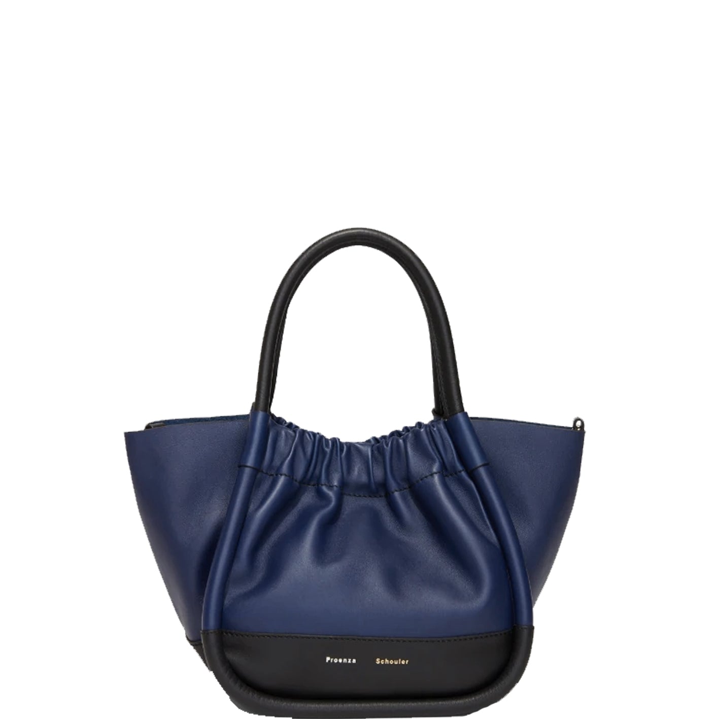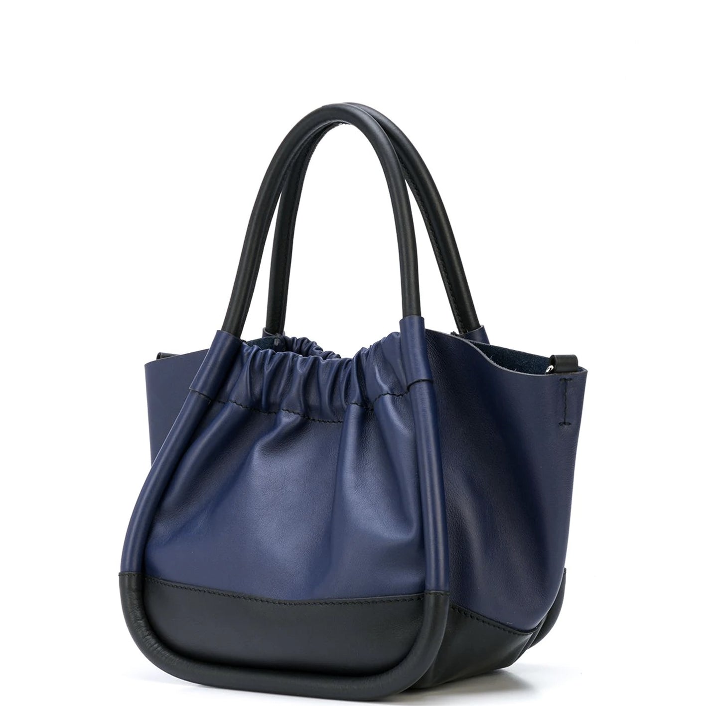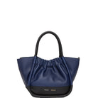 Designed for a soft, unstructured silhouette, the Ruched Large Tote features contrasting black handles and an open ruched top with magnetic closure. Finished with an unlined interior and attached black leather zip pouch. Signature silver and gold-tone logo stamp. Detachable and adjustable long strap.