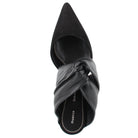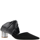 The Twist Block Heel Mules feature a twist detail in soft leather, a faceted silver-tone heel and a pointed toe.