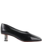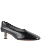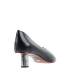 The Wrapped Heel Pumps in black feature a square toe and V-shaped vamp. Cylindrical mid-heel wrapped in wax cording. Ultrasoft glove fit.