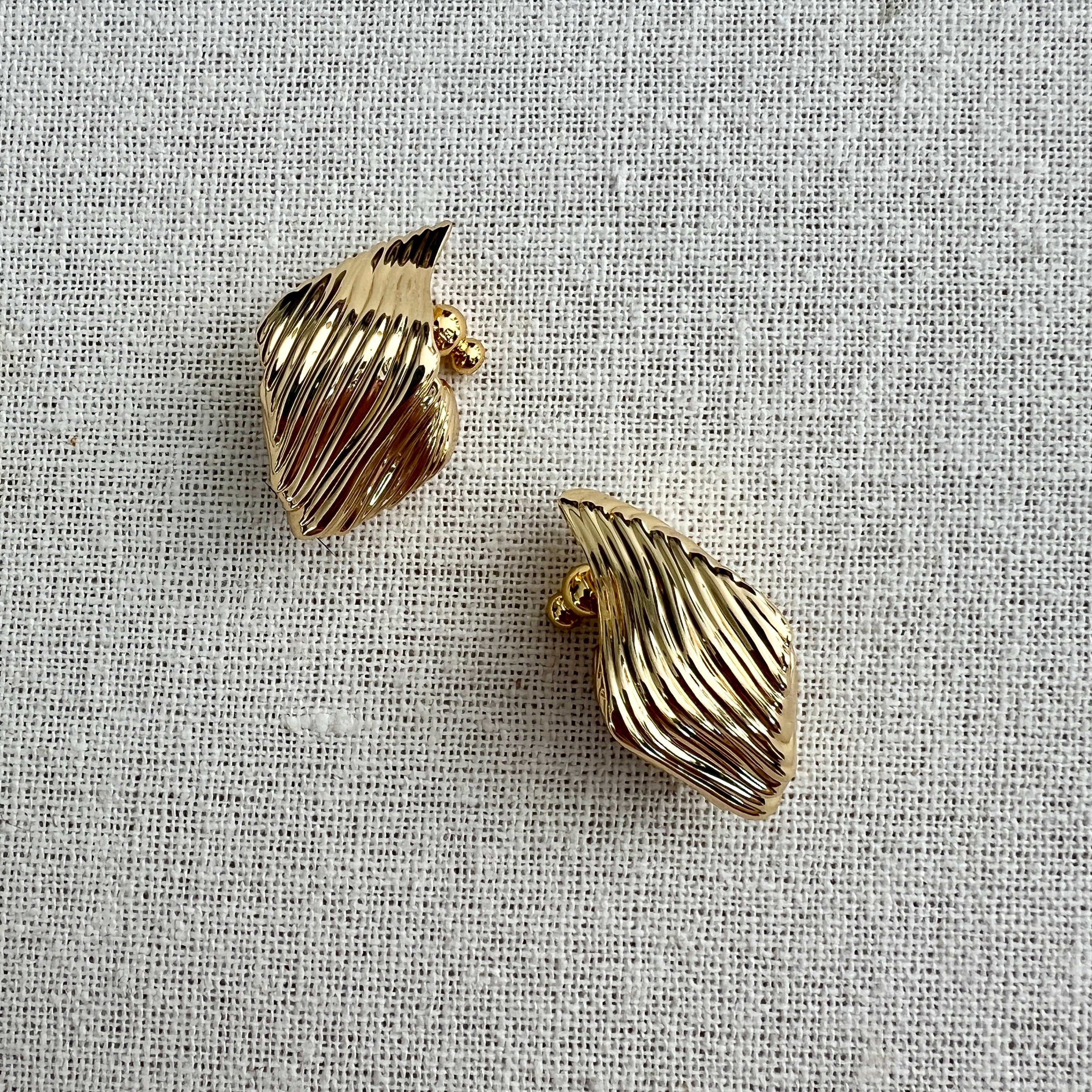 An organic gold toned earring with abstract embossed rings.