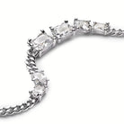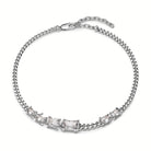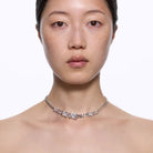 The Roppongi Chandelier Necklace is a chunky choker with multiple octagon-shaped, step-cut white zirconia. The warped prong setting has a futuristic expression and is skillfully crafted in recycled sterling silver.