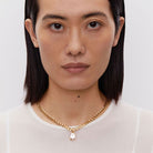 The Roppongi Cider Pendant is an octagon-shaped, step-cut white zirconia in a warped prong setting. It is skillfully crafted in recycled sterling silver and features an extra-large jump ring for wear with chunkier necklaces.