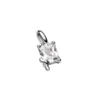 The Roppongi Cider Pendant is an octagon-shaped, step-cut white zirconia in a warped prong setting. It is skillfully crafted in recycled sterling silver and features an extra-large jump ring for wear with chunkier necklaces.