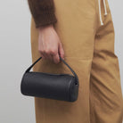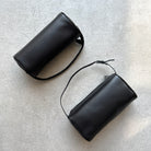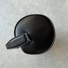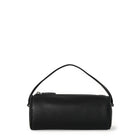 Rounded top handle bag in soft nappa leather with curved gussets, leather piping and slim leather strap with metal hardware.