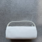 Rounded top handle bag in soft nappa leather with curved gussets, leather piping and slim leather strap with metal hardware.