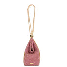 Rue is an elegant wristlet rendered in gold toned trim and shiny glass beads. Her Shell Pink hues exude how precious this bag is. Her gold-toned chain makes Rue easy to carry. She snaps close to keep your essentials safe.