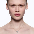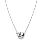 The Sagene necklace is a chain necklace with pendant in an organic shape and features a sliding ball clasp for adjustable length. The pendant slides freely on chain but is not detachable.