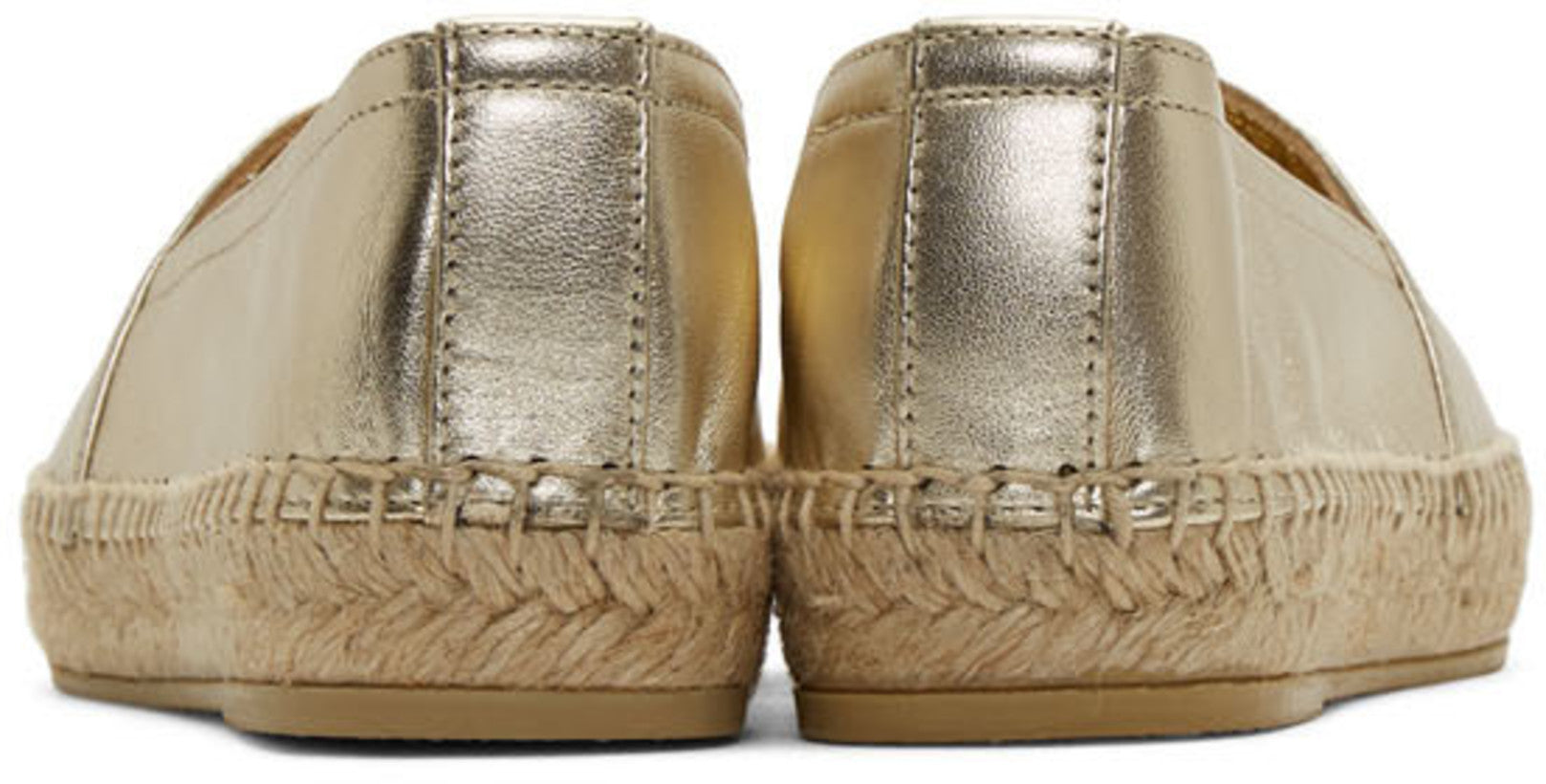 Saint Laurent lambskin espadrille with embossed interlocking YSL signature, rubber sole, gross grain pull-on tab, jute rope mid-sole and foot-bed.
