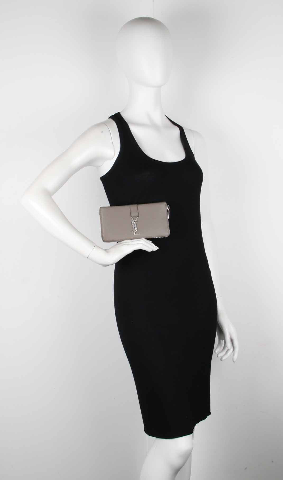 Saint Laurent’s stylish YSL zip flap wallet has been expertly designed to house your everyday essentials with ease. Detailed with the luxury French fashion house’s iconic YSL logo in nickle-tone hardware to the front; the front flap closure opens to reveal twelve internal card slots, one zipped coin pouch, and five internal bill compartments
