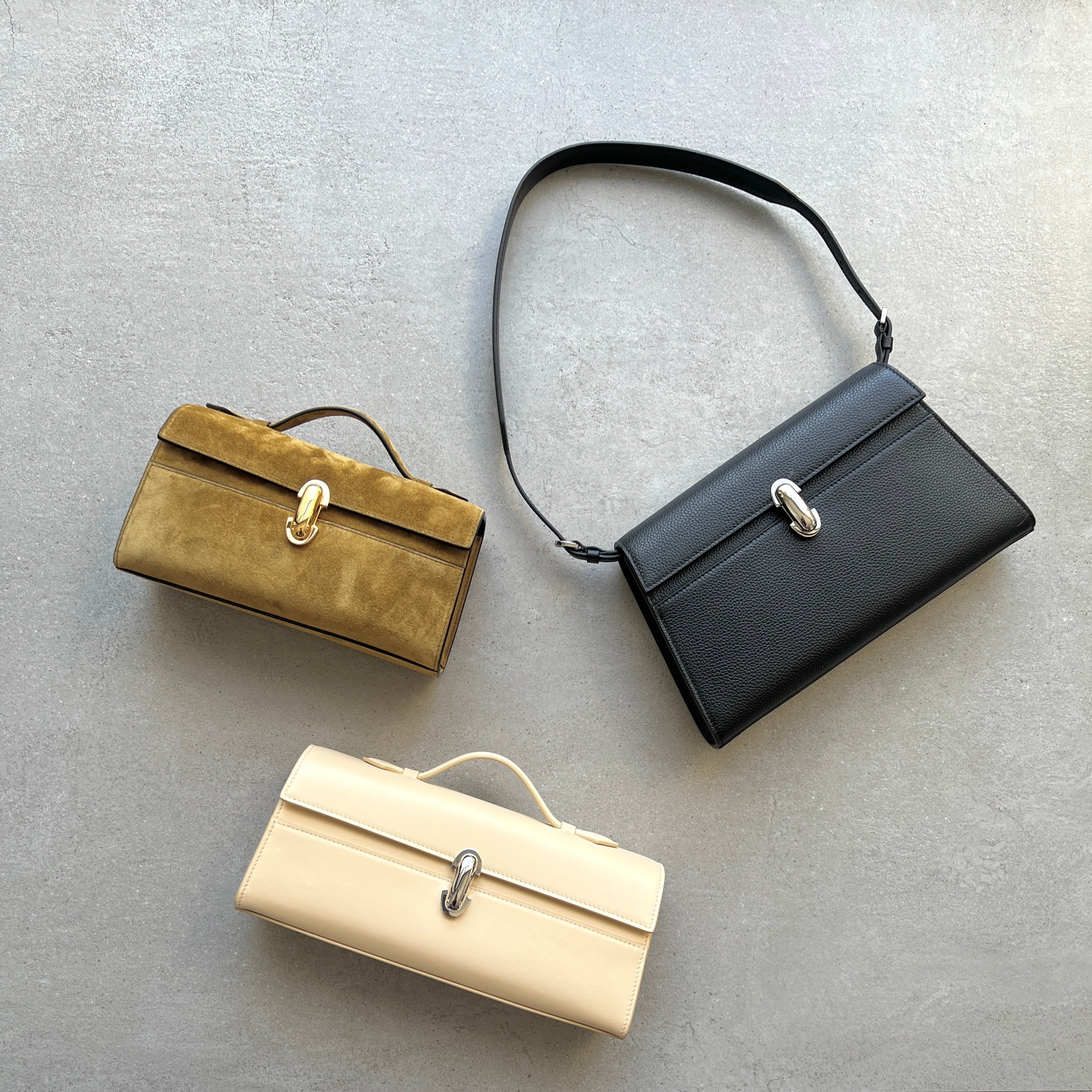 The Symmetry family celebrates geometry in its purest forms: parallel and perpendicular lines. The Slim Pochette is a more stylized and elongated version of our classic pochette silhouette.