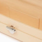 It features our signature Symmetry turnlock, one interior pocket, and a leather handle.
