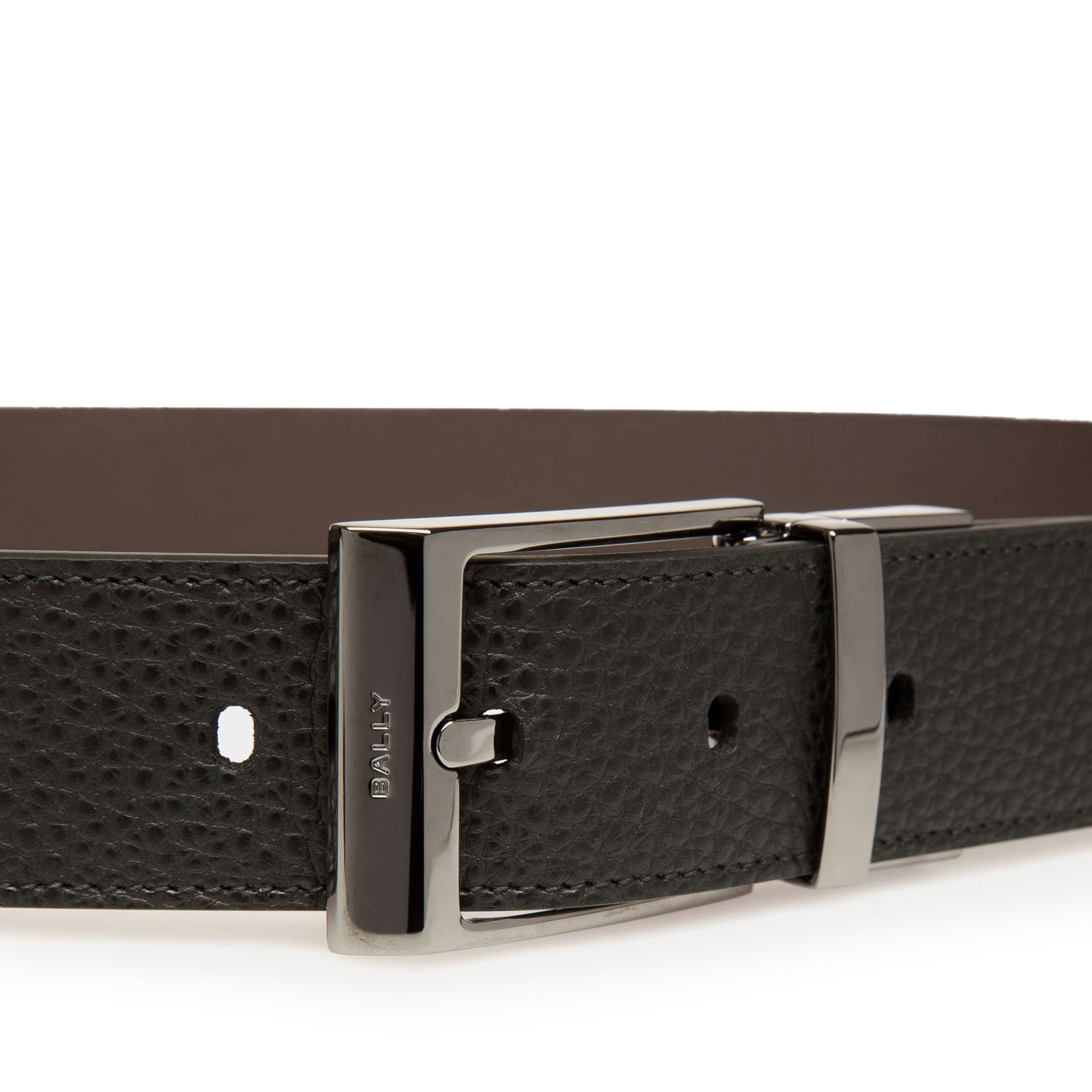 Adjustable and reversible, the Shiffie 35mm belt offers a choice of ebony or black leather. The rectangular buckle at the front, in polished ruthenium-tone metal, is embellished by an essential debossed Bally logo.