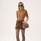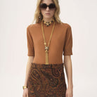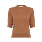 Short-sleeve sweater in a lower-impact fine merino knit, featuring ribbed trims and subtle Chloé logo embroidery at the chest.