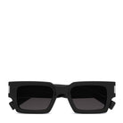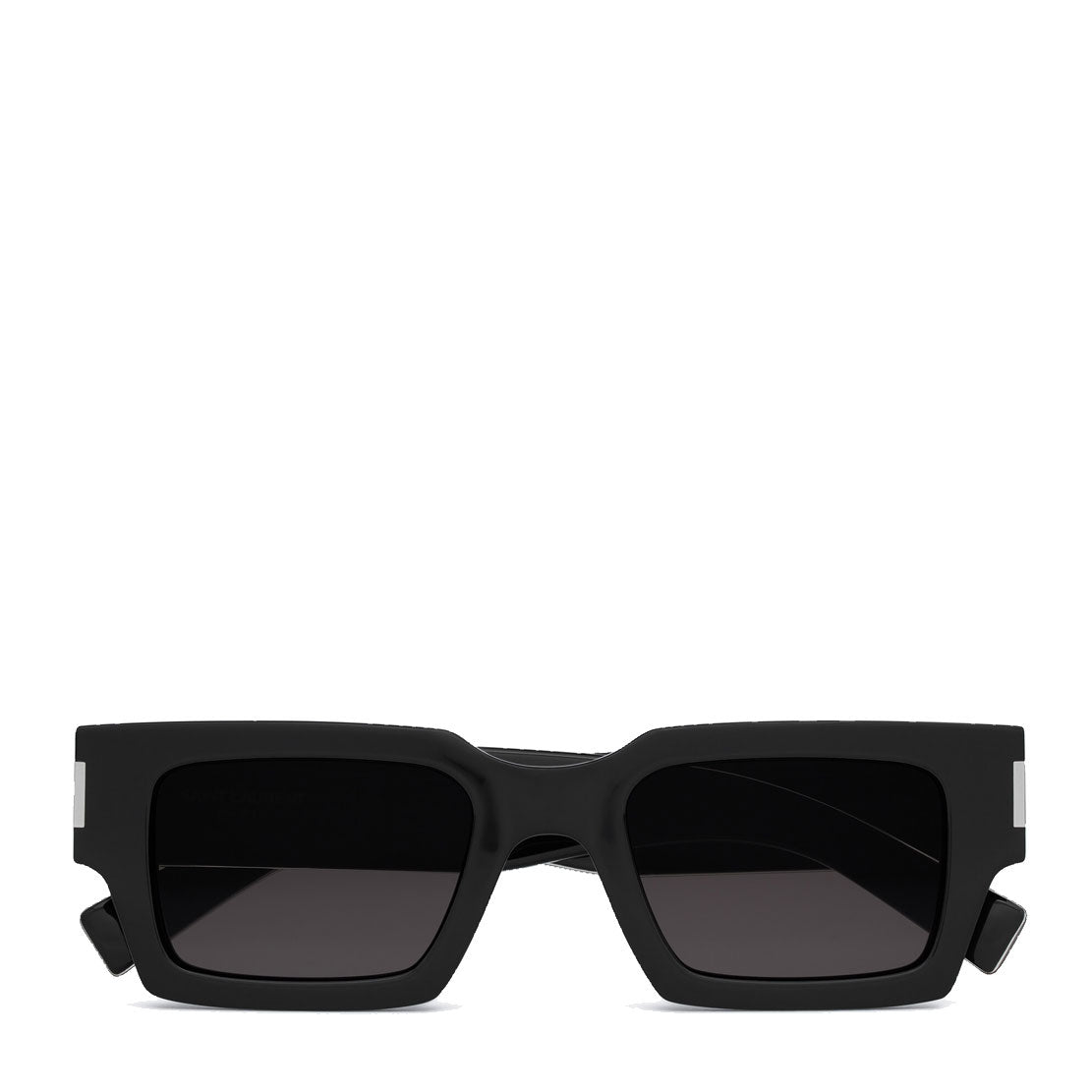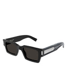 Sunglasses with geometrical square frames in acetate, with nylon lenses and Saint Laurent engraved temples. A squared and sharp shape in the new innovative key concept of the season, naked wirecore, to create a strong Saint Laurent statement. The style is enriched by the biggest corner angle ever, 1 cm, paired with the metal wirecore dimension. The bold acetate temple is made in a new innovative material that allows to have the visible wirecore with lasered Saint Laurent logo in super shiny finishing.