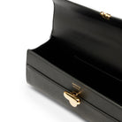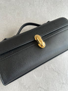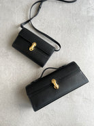 It features our signature Symmetry turnlock, one interior pocket, and a leather handle.