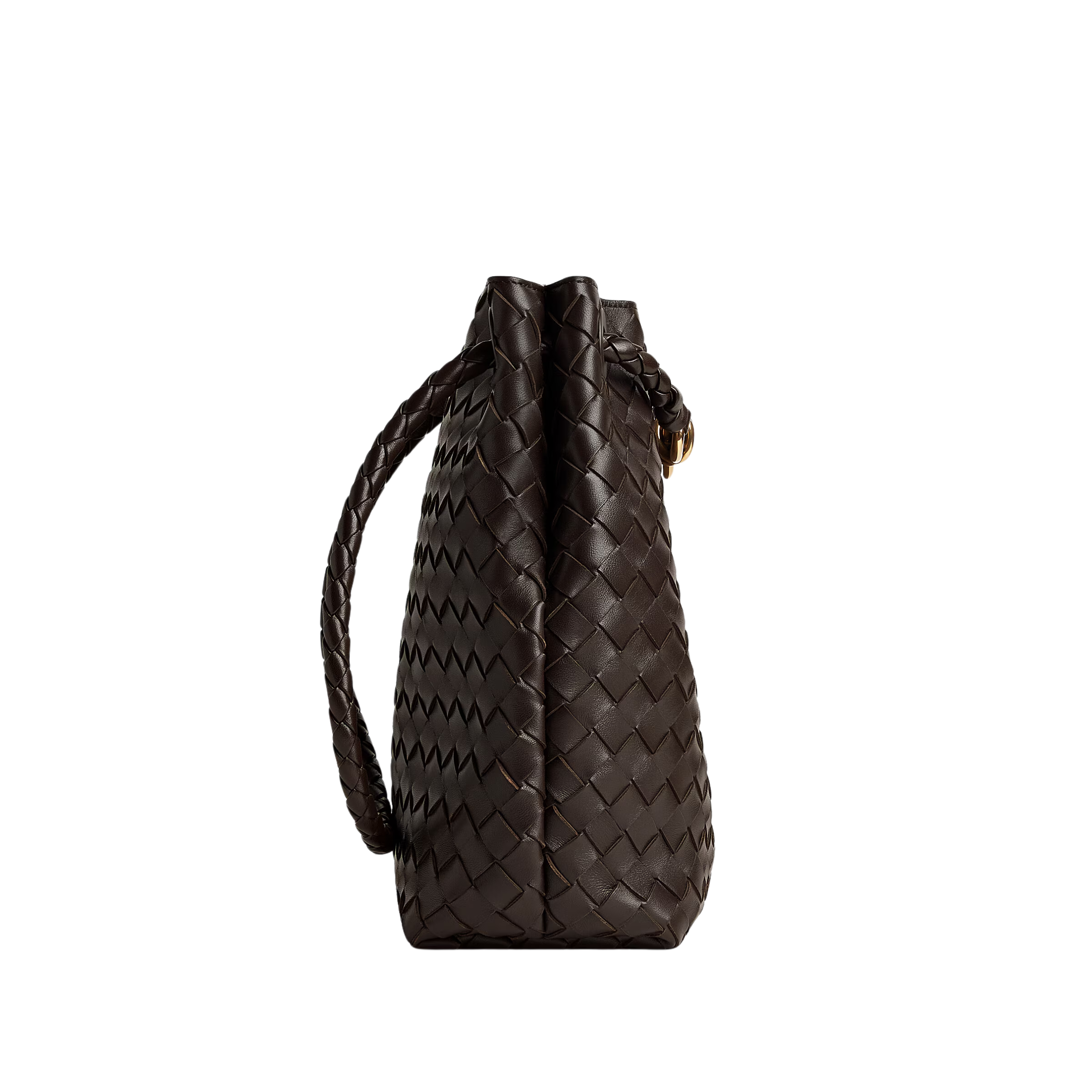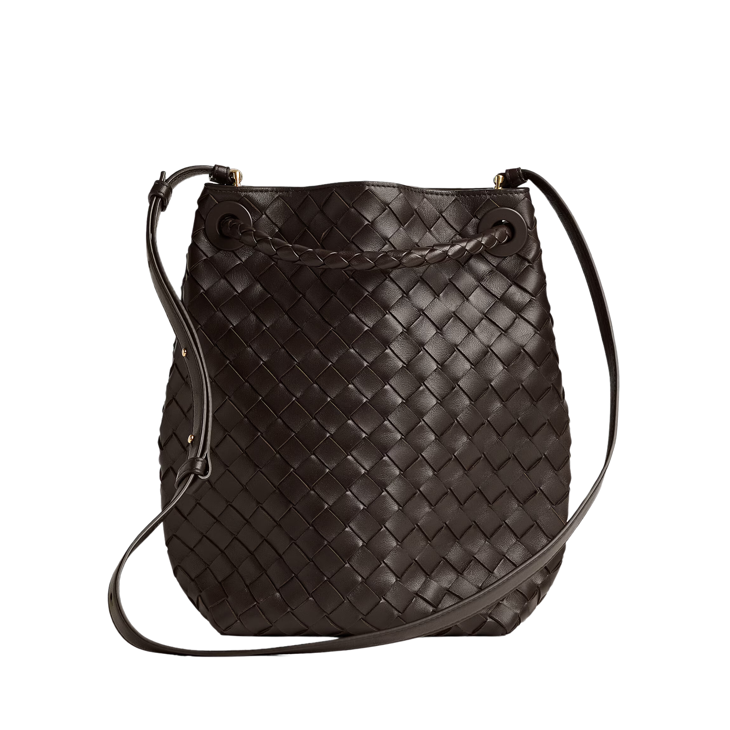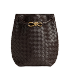 Bucket bag in supple Intrecciato leather with signature knot detail and sliding shoulder strap.