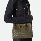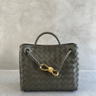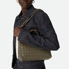 Andiamo is a new expression of the signature Intrecciato weave realised by the expert craftsmanship of artisans in the house’s atelier. Its name, Andiamo, “Let’s go” in Italian, embodies the spirit of the bag, a tribute to going places and the concept of craft in motion. The bag features a timeless Intrecciato silhouette woven by hand. A metal knot adorns and fastens its sliding braided straps, allowing it to be adjusted over the shoulder or across the body, giving the bag a soft tapered volume.