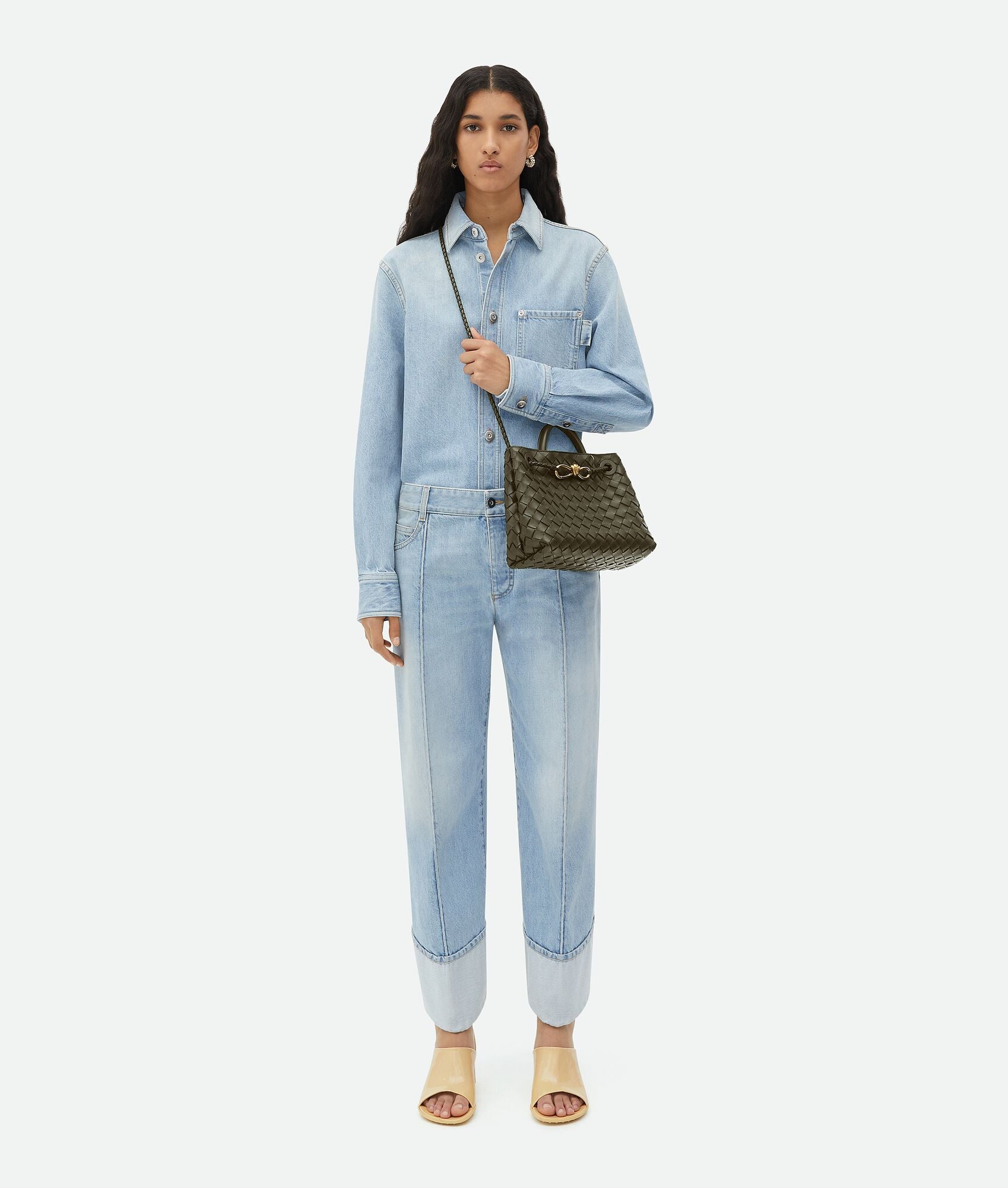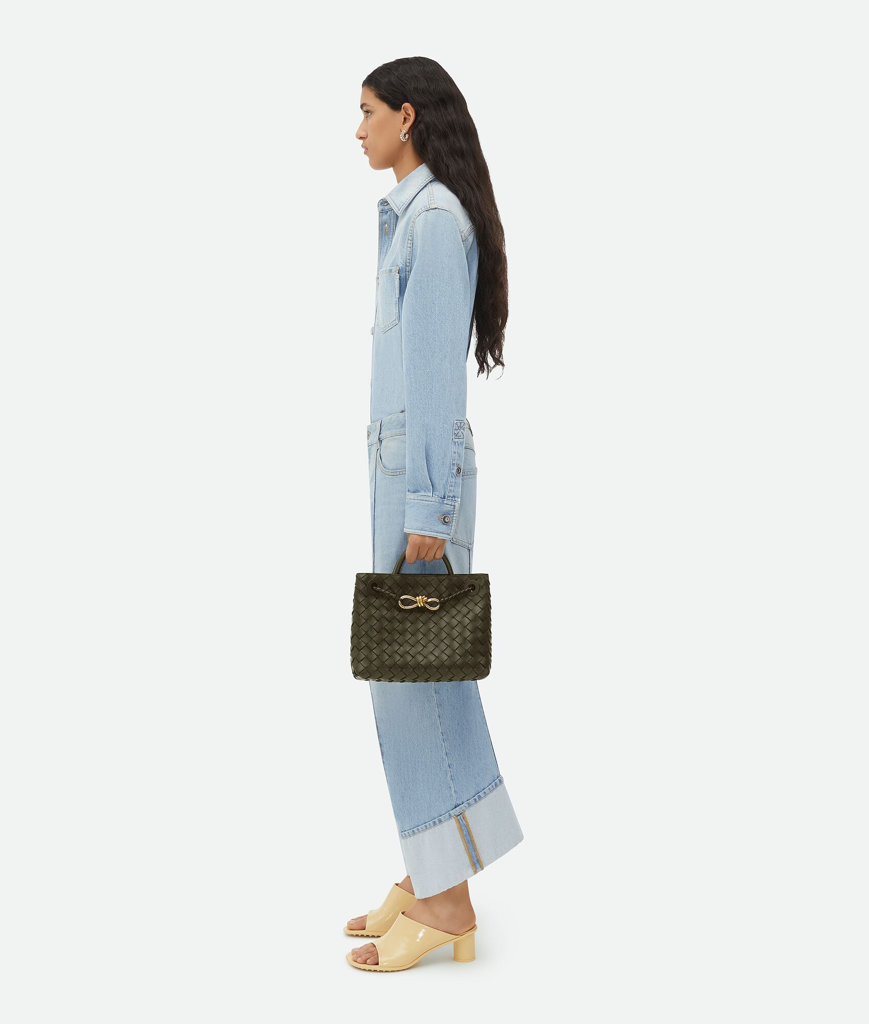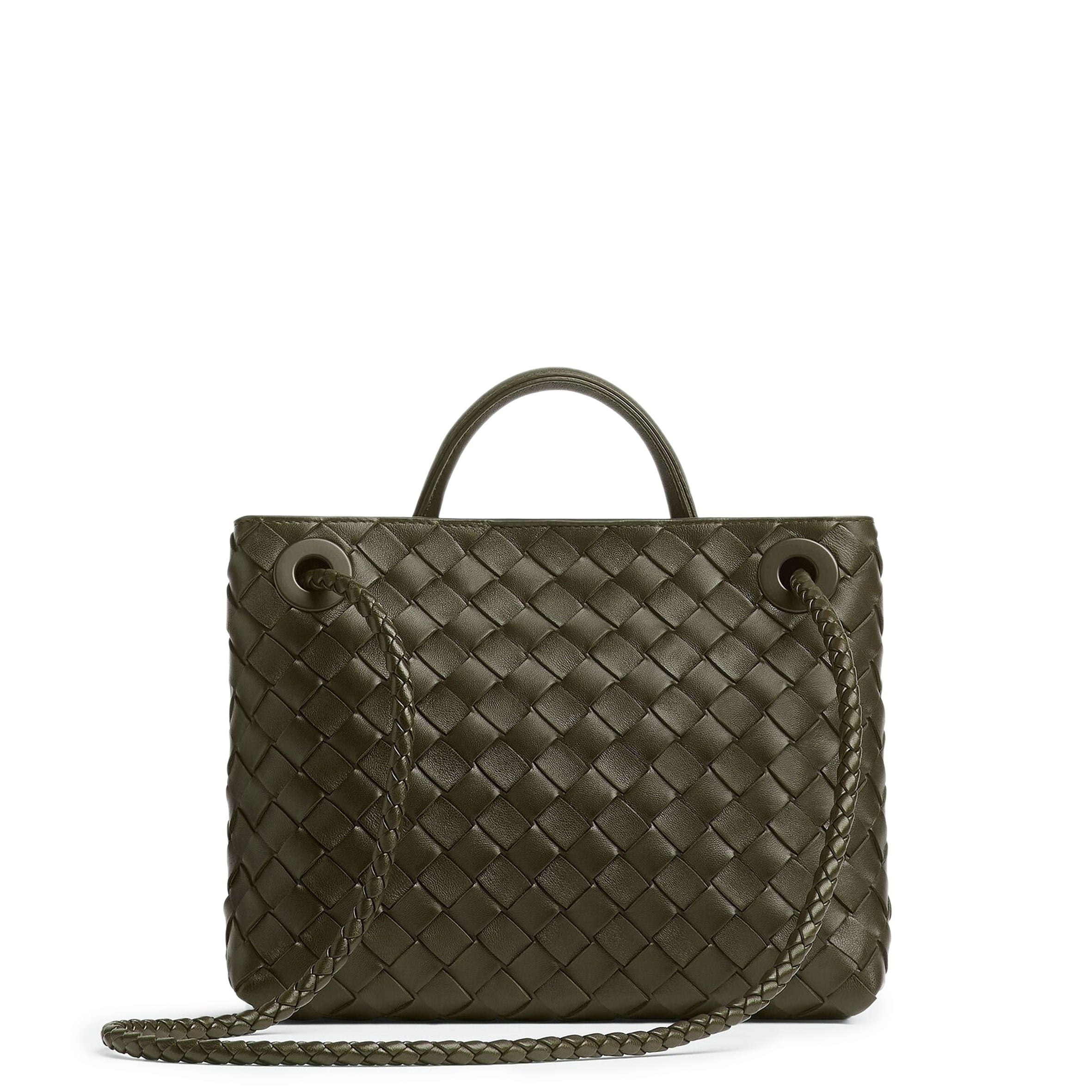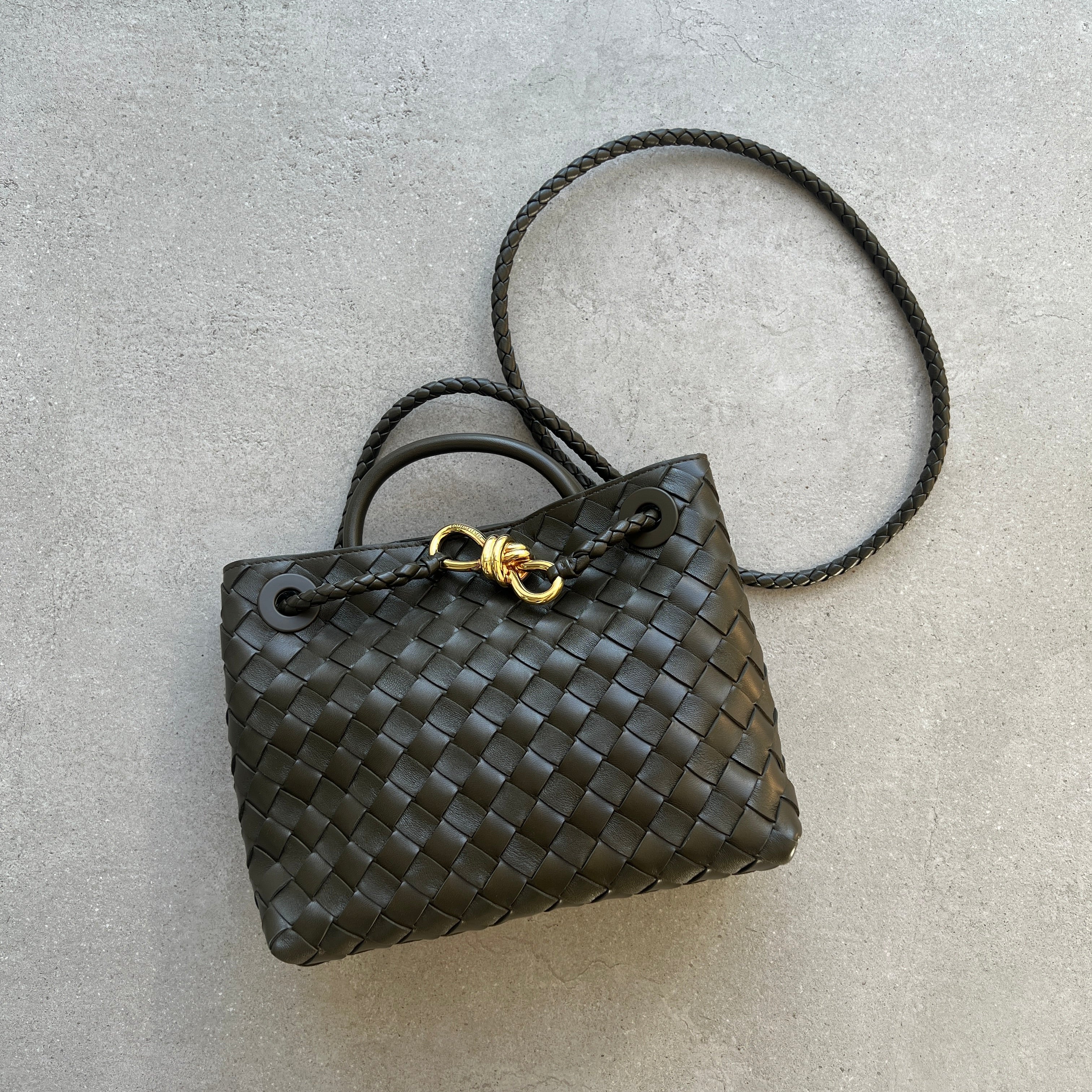 Andiamo is a new expression of the signature Intrecciato weave realised by the expert craftsmanship of artisans in the house’s atelier. Its name, Andiamo, “Let’s go” in Italian, embodies the spirit of the bag, a tribute to going places and the concept of craft in motion. The bag features a timeless Intrecciato silhouette woven by hand. A metal knot adorns and fastens its sliding braided straps, allowing it to be adjusted over the shoulder or across the body, giving the bag a soft tapered volume.