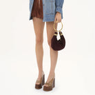Inspired by the Maison's Archives, this mini Bracelet Hobo bag is crafted from suede lambskin. The supple, rounded shape is elevated by a bracelet handle and stacked bi-color rings at the ends.