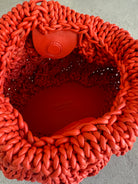 Leather Cable Knit Bag, Orange