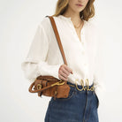 This shoulder bag is made from pure aniline leather. Tanning imparts a specific character to the skin, such as hues and wrinkles, combined with a light and transparent aniline finish. Respect the care instructions on the leaflet.