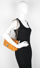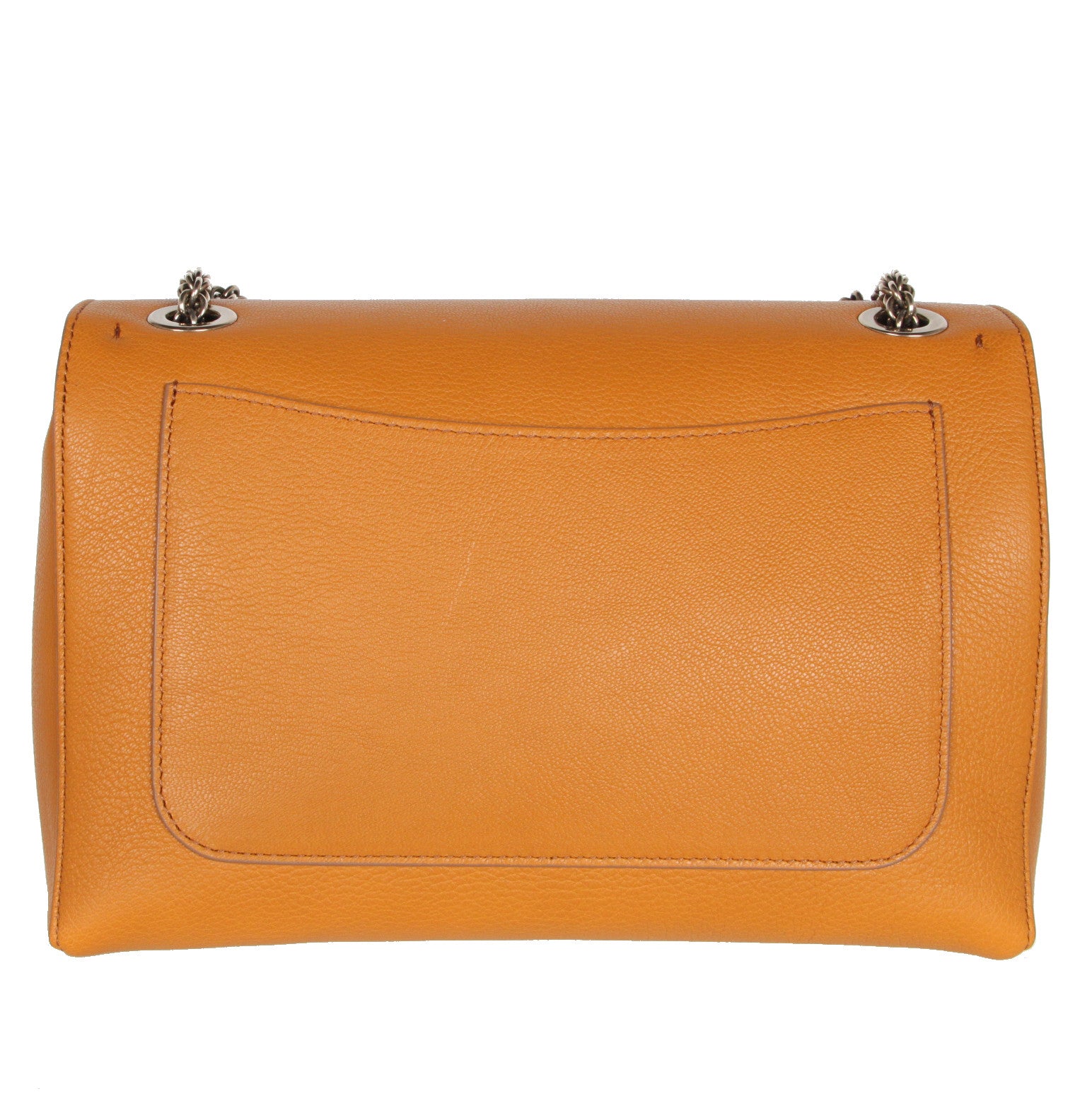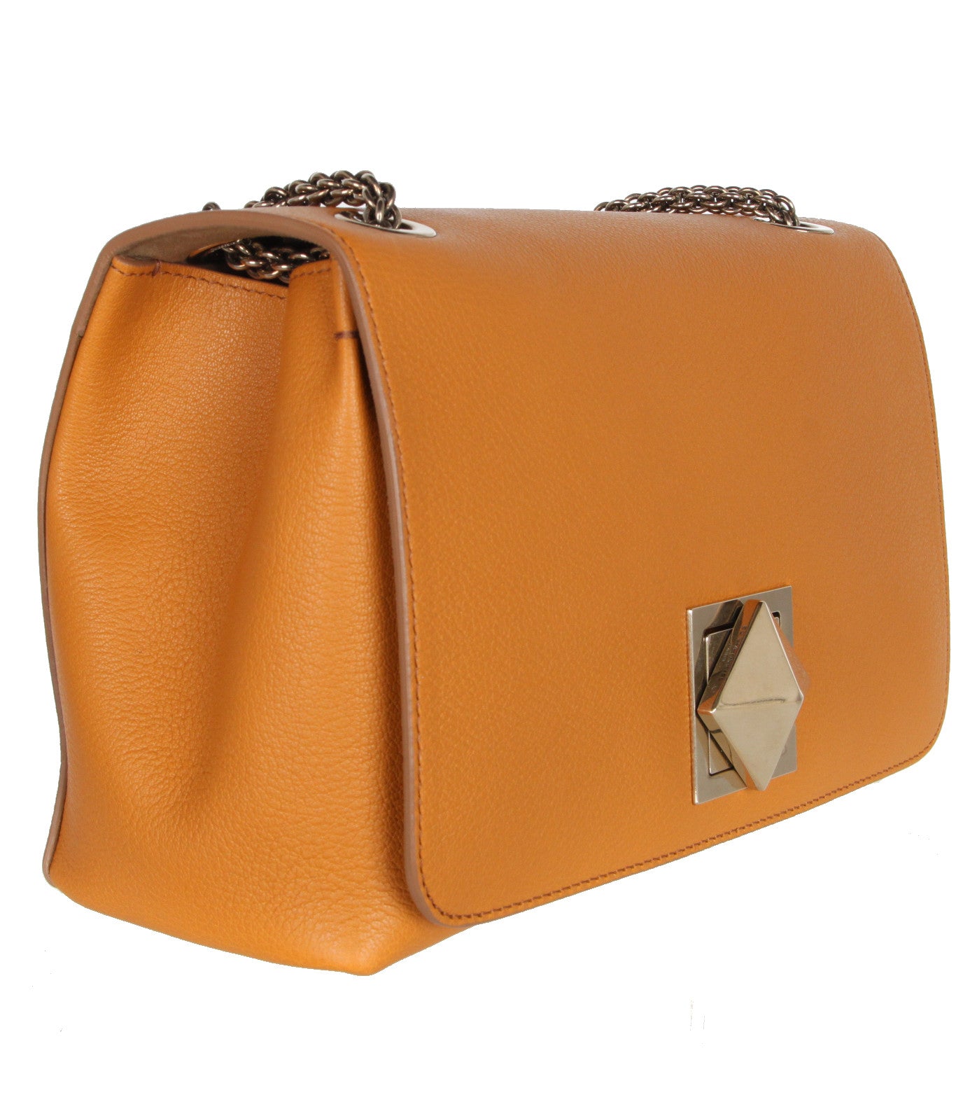 Sonia Rykiel medium flap bag, suede lined, and interior and exterior flat pocket and internal zip pocket, twist clasp closure. Chain can be doubled over and worn as a shoulder bag or lengthened to be cross body.