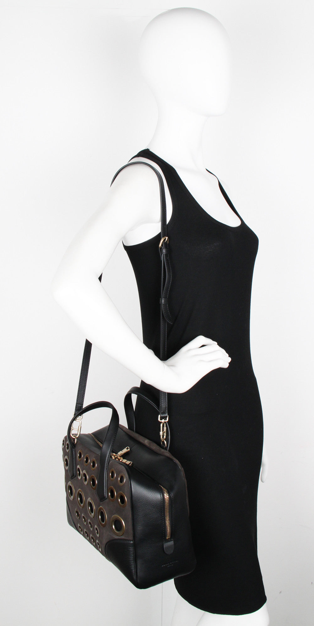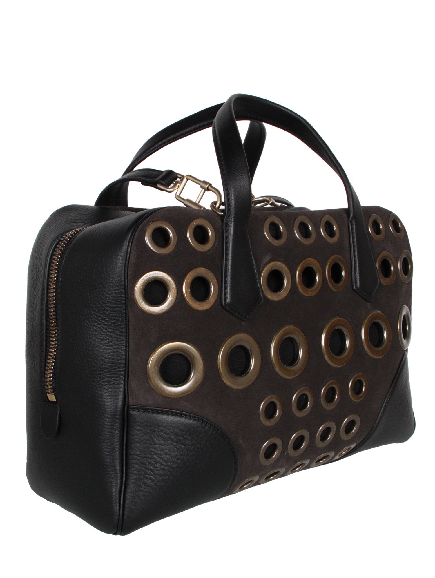 Le Coussin Boston Eyelet Bag, Black/Grey