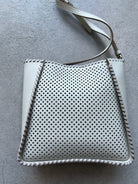 A perforated rendition of the classic logo hobo tote is your new day-to-day essential. It is crafted from luxurious vegan alternative to animal leather, with a butter-soft hand-feel, and features iconic circular Stella McCartney logo on the front.