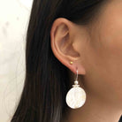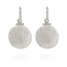 Rei earrings in cross brushed Ethical Sterling Silver, speak to the coin jewellery of the ancients. The delicate textured face and handmade hinges that allow the earrings to sit naturally, also create a firm statement, appearing as contemporary as they do ancient.