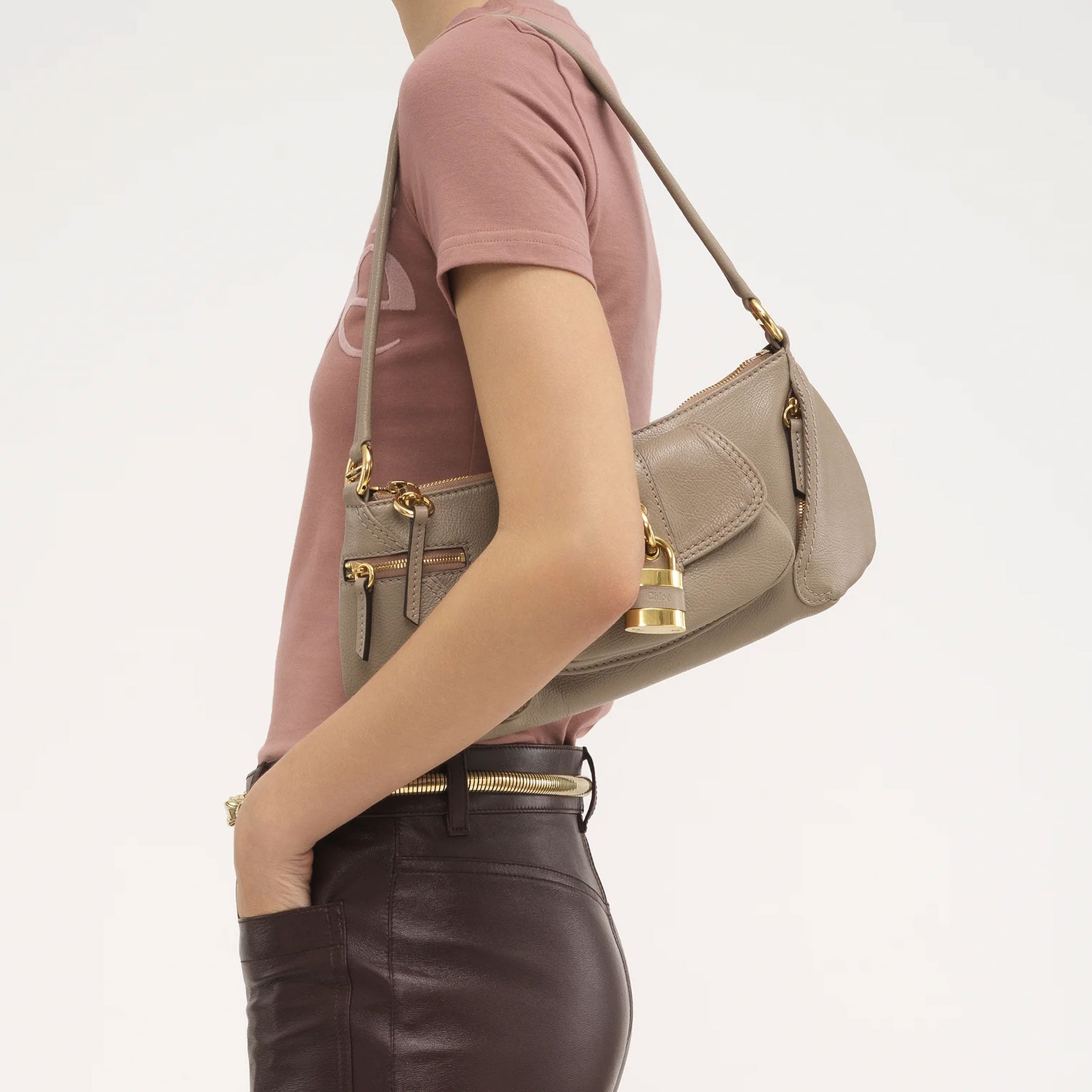 The roomy front pocket is embellished with a large engraved Paddington lock.