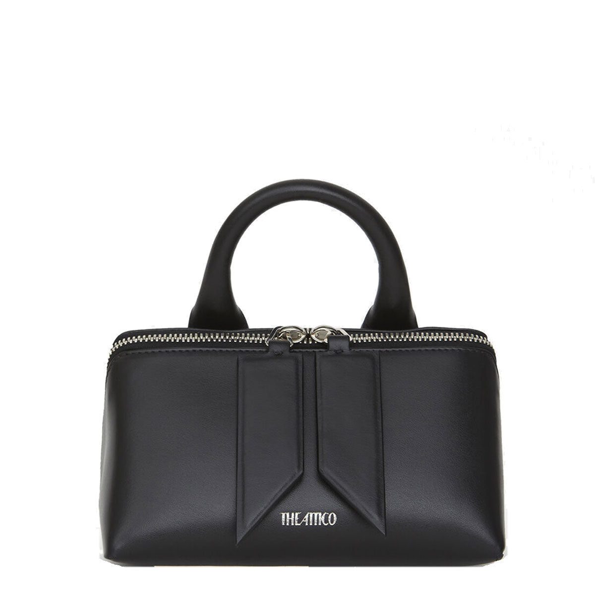 ''Friday'' mini handbag in black leather with top handle and removable shoulder strap that doubles as a belt.