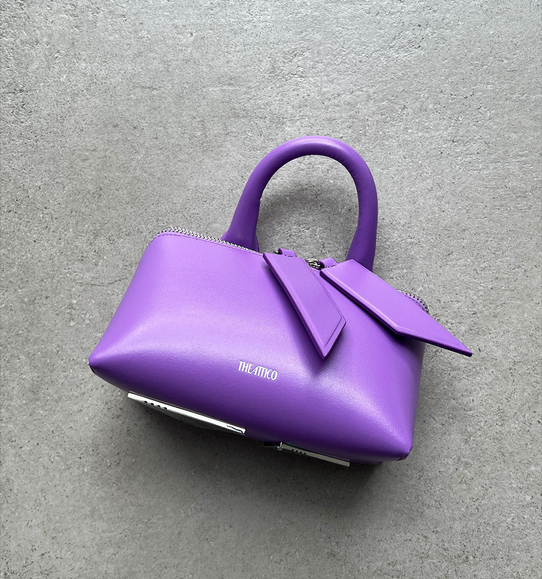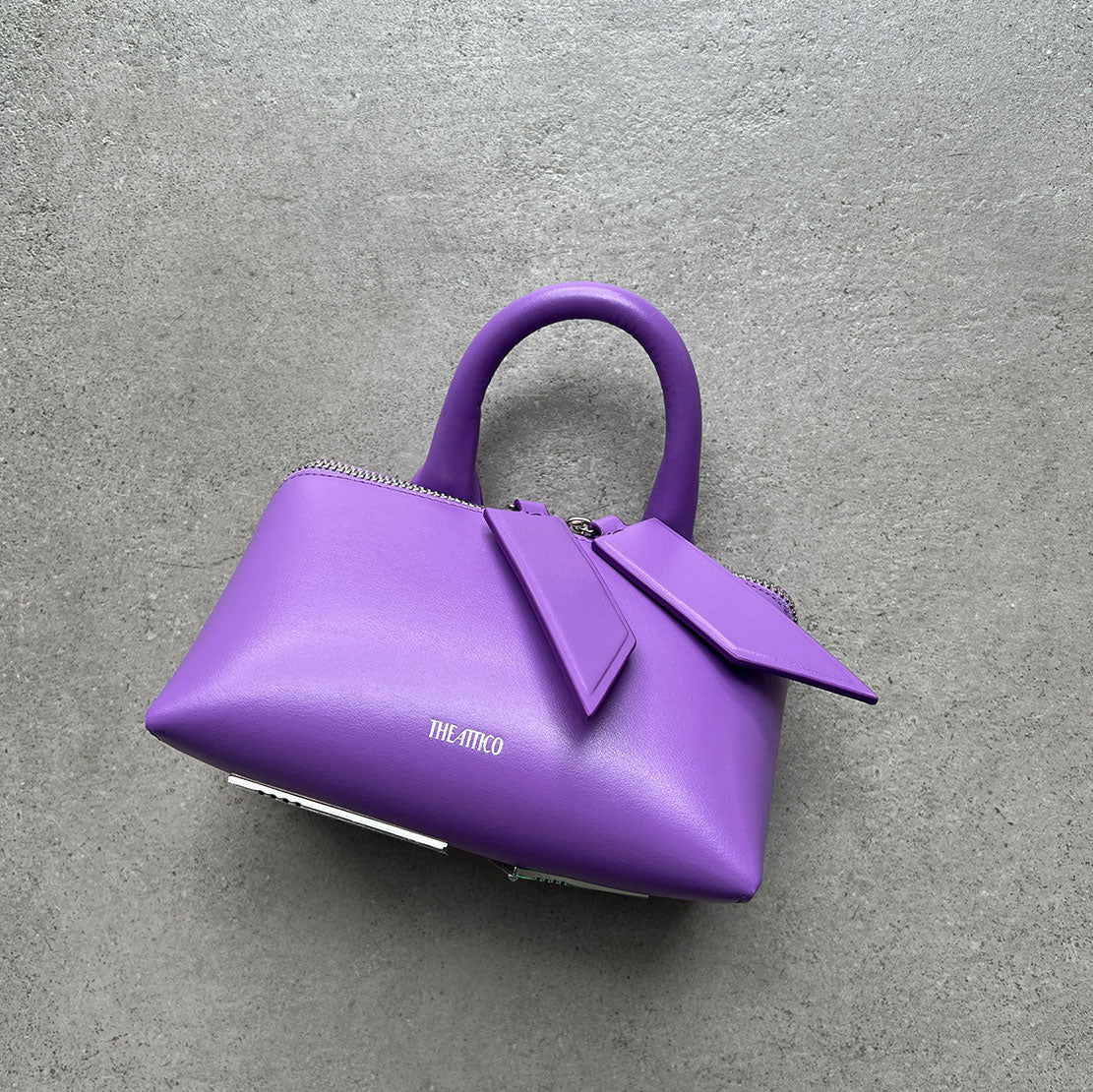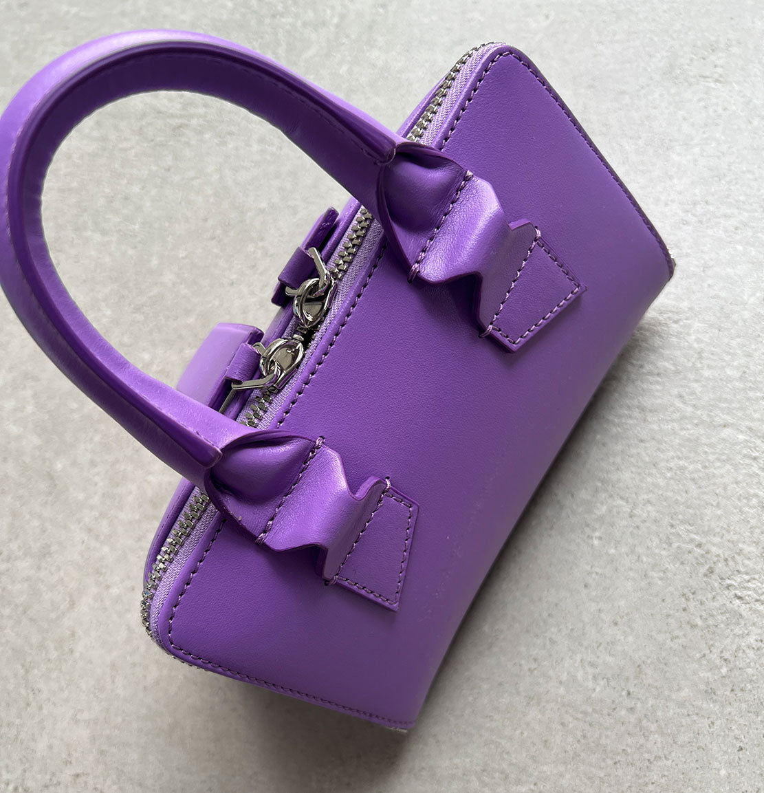 ''Friday'' mini handbag in mauve leather with top handle and removable shoulder strap that doubles as a belt.