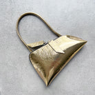 "Sunrise" shoulder bag in Craq Gold finish with shoulder strap and ziptop closure.