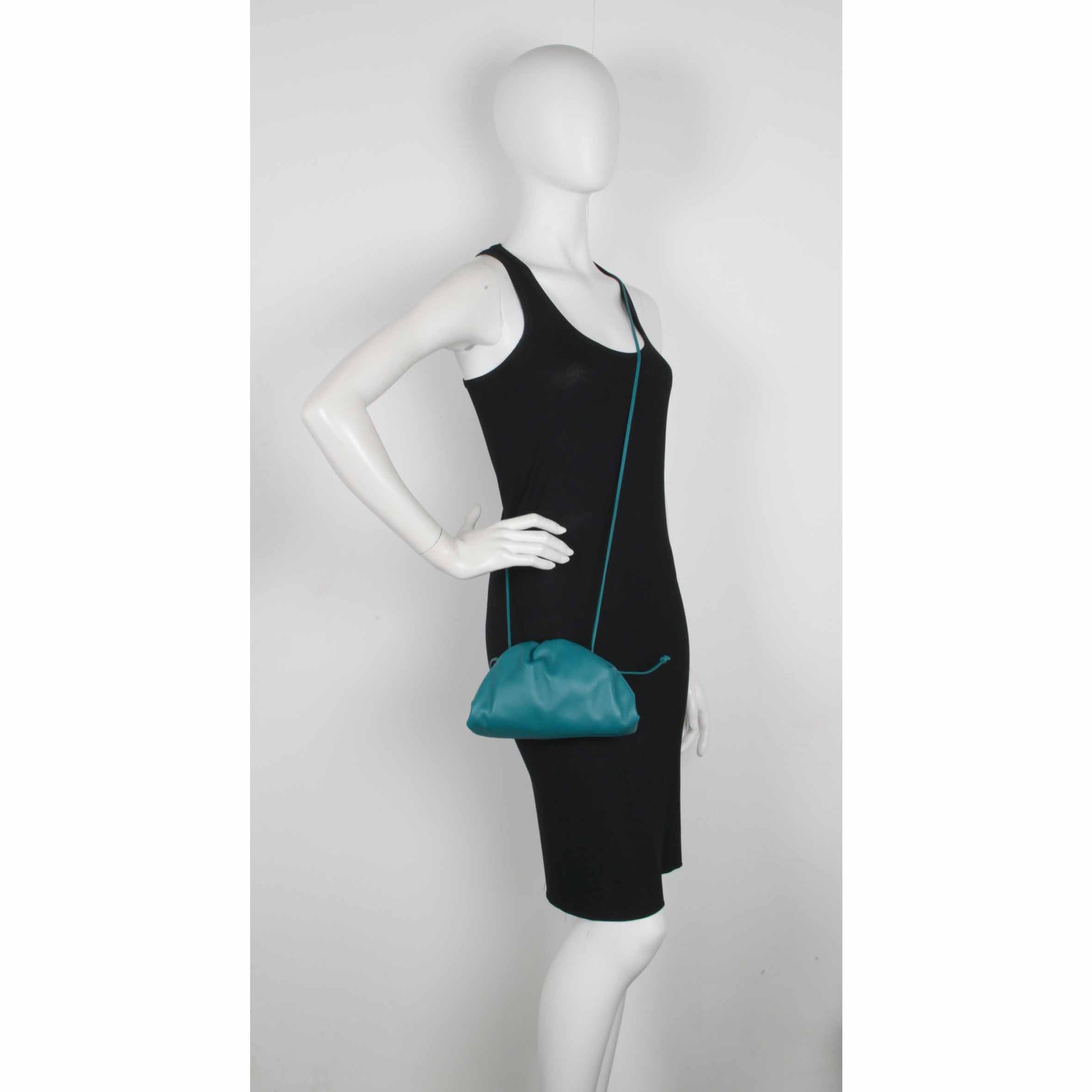 Soft voluminous clutch in exceptionally supple calfskin. Magnetic frame covered in folds of shiny calfskin. Single compartment lined in shiny calfskin. Slim leather shoulder strap. Smaller style of The Pouch, a brand icon that reflects Bottega Veneta’s heritage with a modern attitude