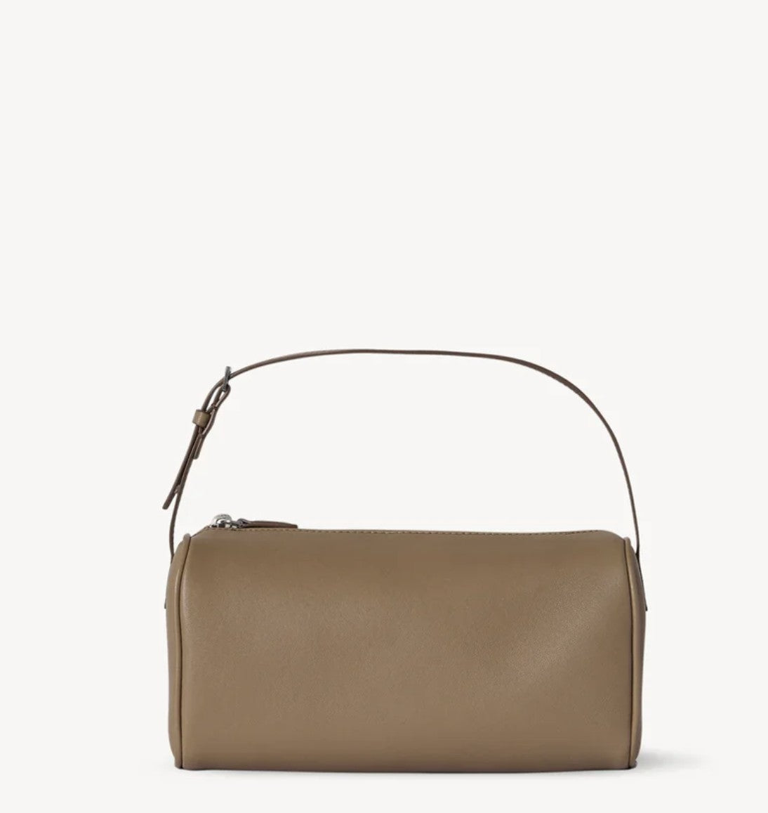 Top handle bag in smooth nappa leather with softly rounded edges, leather piping, and adjustable slim leather strap.