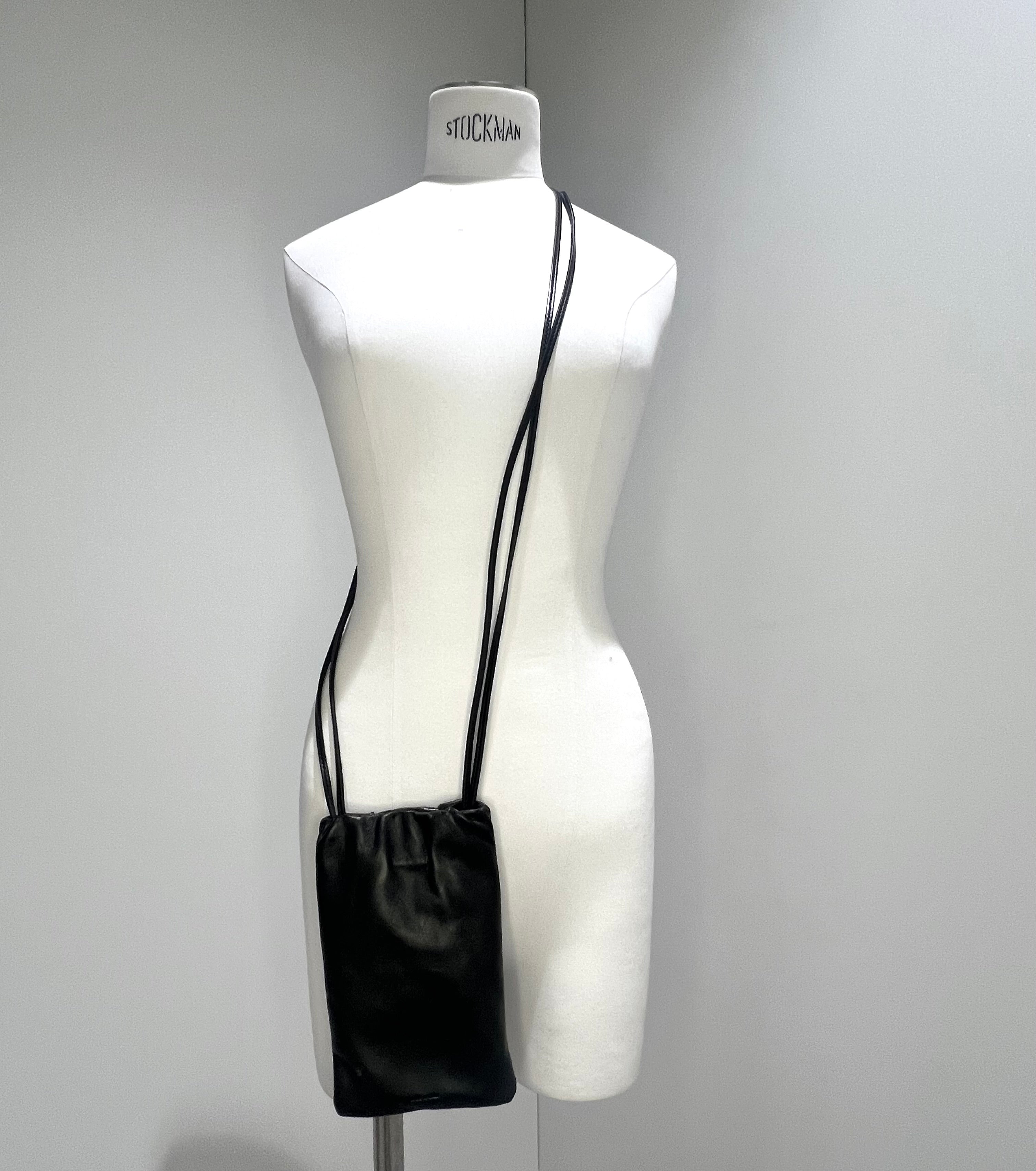 Wearable ruched phone case in softly grained deerskin leather with knotted double straps.