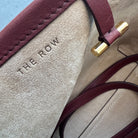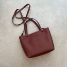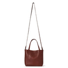 Classic tote bag in tumbled grained calfskin leather with interior toggle closure and flat handle.