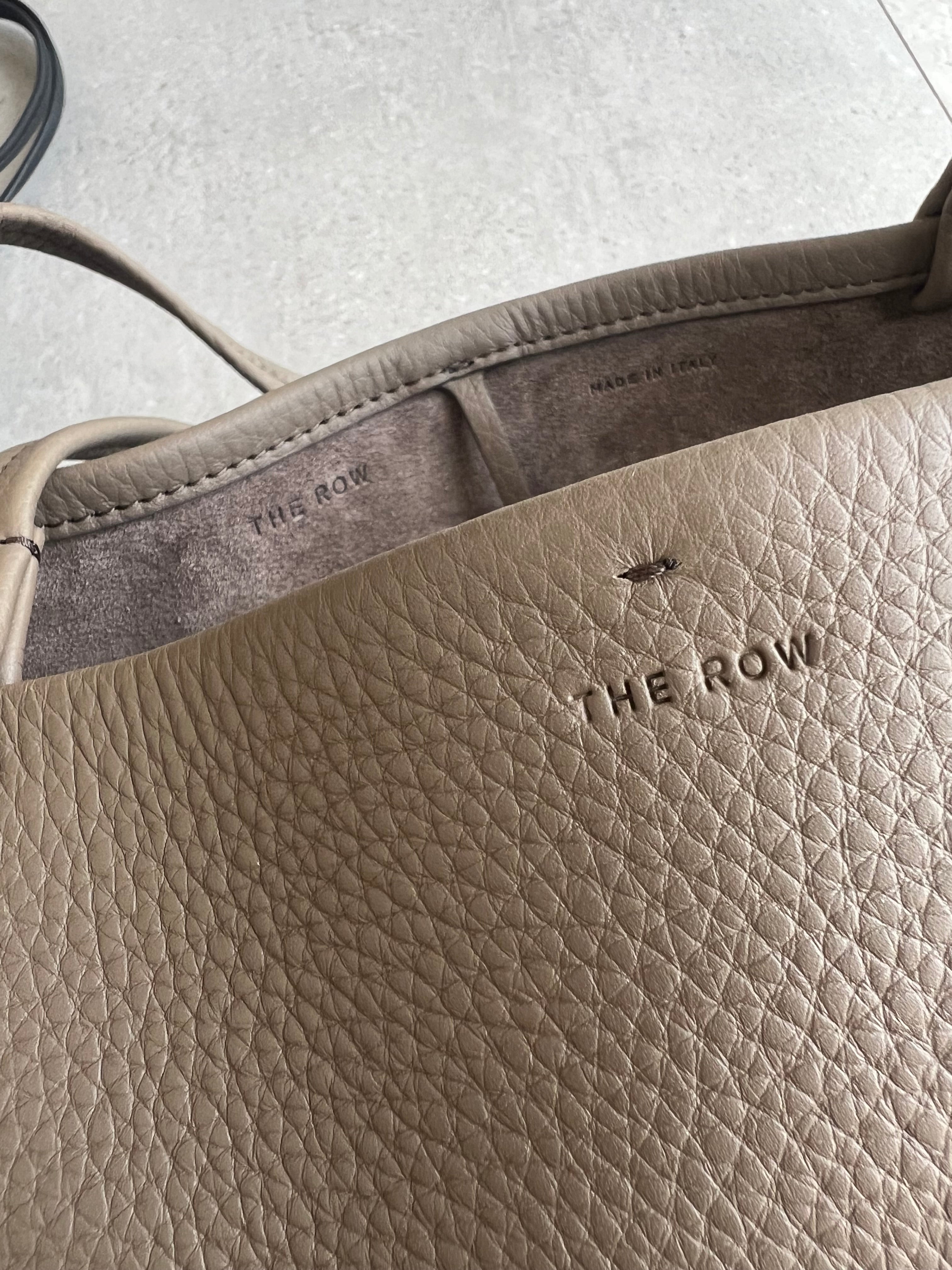 Classic tote bag in textured calfskin leather with interior toggle closure and flat handles. Minimally finished, the natural grain surface is left intact, giving the leather a supple hand and refined texture that develops character over time.