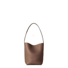 Classic tote bag in tumbled grained calfskin leather with interior toggle closure and flat handle.