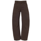 Mid-rise relaxed barrel leg pant in Italian brushed stretch twill cotton. Slant pockets. Back patch pockets. Coin pocket. Hidden hook-and-bar closure. Zip fly. Belt loops.
